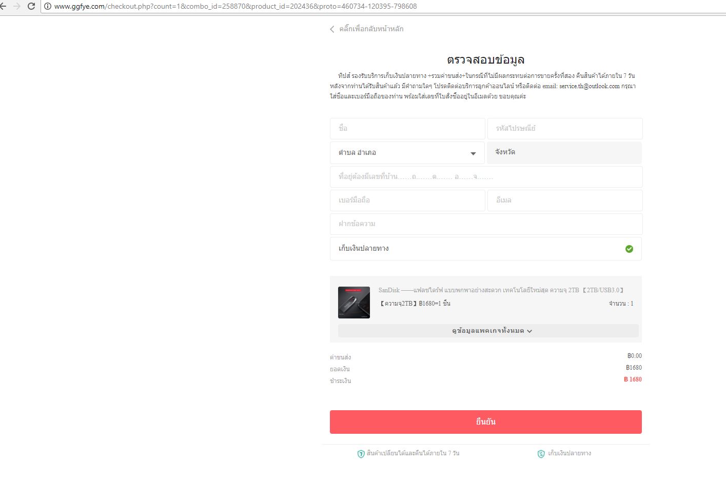 เลยทดลองเข้าหน้าเว็บที่เพื่อนส่งมาบ้าง ปรากฏว่าการสั่งซื้อนั้นเป็นหน้าแบบเดียวกัน mail service เดียวกันเป๊ะ แสดงว่าคนทำเว็บนี้น่าจะเป็นกลุ่มเดียวกันหรือคนเดียวกัน
