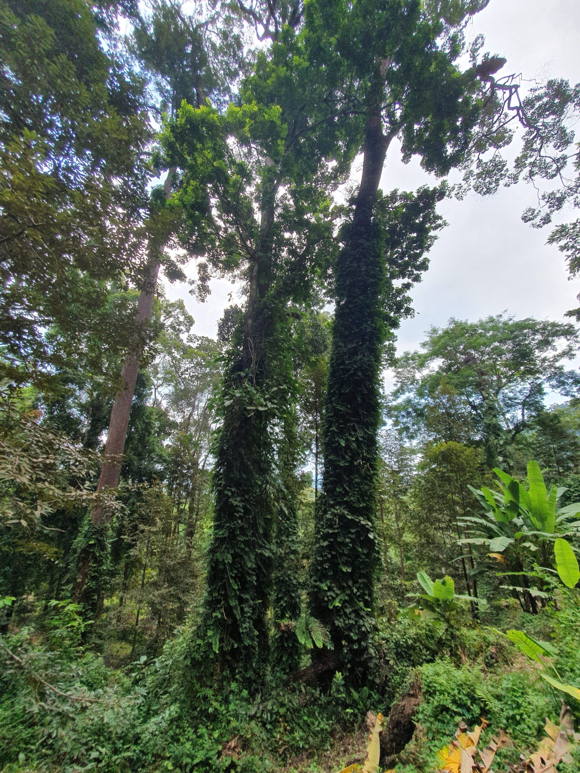 เพียงแค่ลับบ้านหลังนั้นพวกเราก็ตกใจ ป่าที่เห็นเป็นป่าที่สมบูรณ์มาก เหมือนมันไม่เคยถูกบุกรุกมาก่อนเลย ต้นไม้สูงเหยียดขึ้นฟ้า บางต้นใหญ่ 5 – 6 คนโอบ ไม่น่าเชื่อว่าจะมีป่าแบบนี้ประชิดเมืองอยู่ใกล้แค่นี้เอง